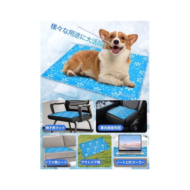 Angelpet ペットひんやりマット犬 猫 夏用 クールマット 冷感ジェルマット 暑さ熱中症対策 洗える ペット人間兼用冷却シート 多用途 猫 小中大型犬対応 (L(90*50cm), スノーフレーク柄)