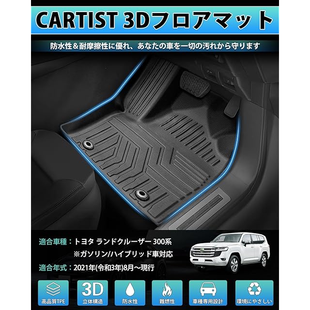 Cartist ランドクルーザー300系 に適用 フロアマット 立体カーマット 3Dフロアマット オートマ用 R3.8~現行 5人乗り用 セカンドマット 防水 滑り防止 耐汚れ TPE素材 カスタムパーツ 車種専用設計 取付簡単 保護パーツ カー用品 3PCSセット