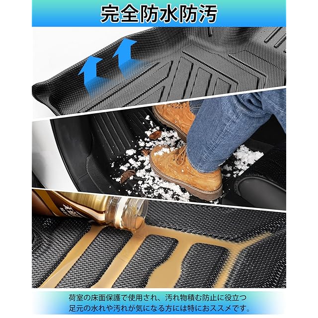 2.【高品質TPE素材】:摩擦性に優れたTPE樹脂素材を採用し、耐汚れと耐摩擦性を実現しました。3D立体構造のお掛けで車が運転している途中でも、飲み物などが溢れっても水やジュースなどはフロアマットの外への侵入を防止します。弊社のマットには防水性&耐摩擦性に優れた、変な匂いも無し、お手入れも楽々!