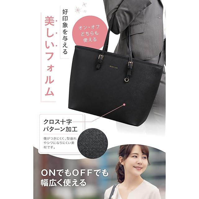 [Miwoluna] ミウォルナ ビジネスバッグ トートバッグ レディース リクルート A4 PUレザー ブラック ロゴ無し