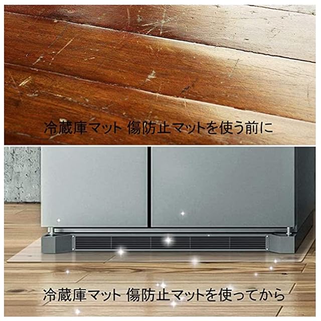 冷蔵庫キズへこみ防止マット:冷蔵庫は重いので床が凹みやすいです。冷蔵庫マットを敷くだけで、いつの間にか冷蔵庫下の床が汚れていた凹んでいた といことがなくなります. 耐荷重性も防振性も申し分ありません