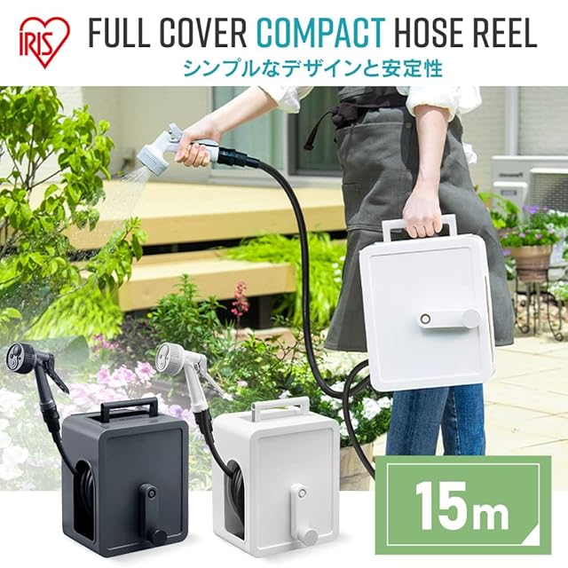 アイリスオーヤマ(IRIS OHYAMA) ホースリール 15m フルカバー仕様 蛇口ジョイント付 水形切替機能付 持ち運びしやすい持ち手付き FCH-15M ホワイト