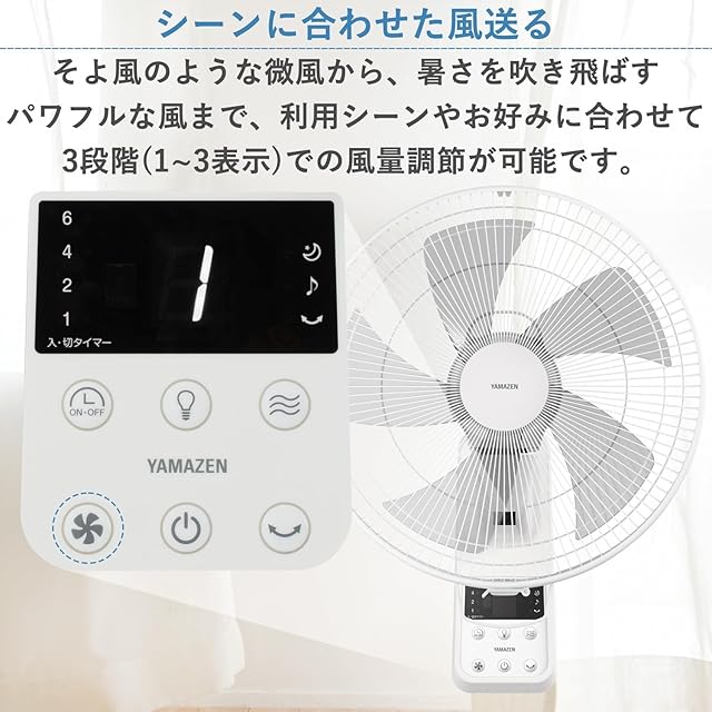 [山善] 壁掛け扇風機 ワイド 左右自動首振り 風量3段階調節 お手入れ簡単 入切タイマー おやすみモード リズム風 リモコン付き 脱衣所 洗面所 ホワイト YWX-F351(W)