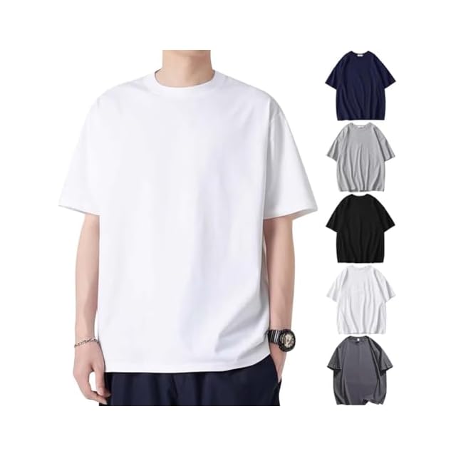 [Kayiyasu] Tシャツ メンズ 半袖 7オンス 肉厚生地 おおきいサイズ クルーネック 100綿 透けない(5色(5枚組) 2XL)