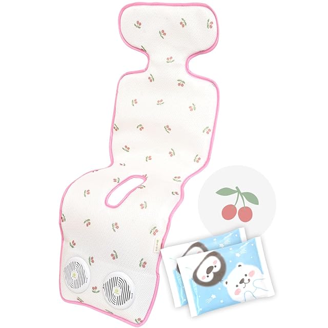 (ケラッタ) 保冷 ファン付きベビーカーシート 赤ちゃん 保冷剤と送風ファンダブルで体感マイナス5℃ 春 夏 暑さ対策 チャイルドシート 保冷剤2個付 (a. チェリー)