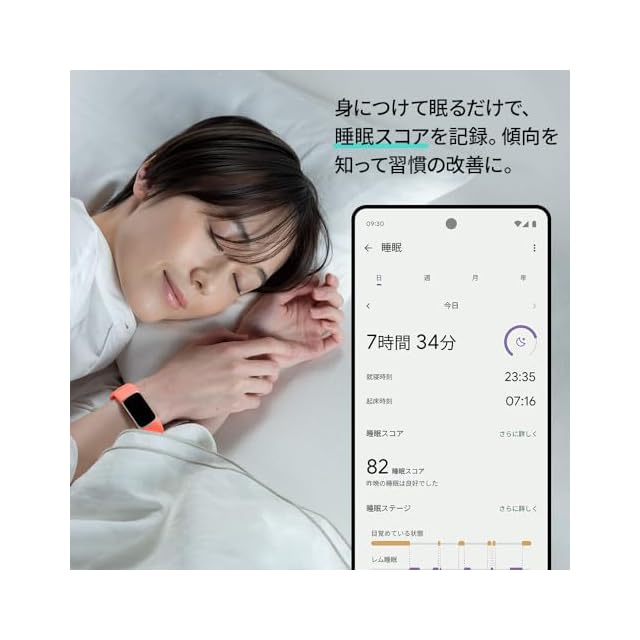 【睡眠スコアを表示】 毎日の睡眠スコアで、その日の過ごし方が睡眠にどのような影響を与えたかを把握できます。浅い睡眠、深い睡眠、レム睡眠の各睡眠ステージのグラフ表示など、毎晩の睡眠についての高度な指標も提供。月ごとの睡眠分析では、自分の睡眠習慣や長期的な傾向を追跡できます。