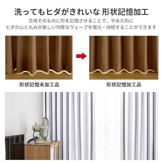 【遮熱保温·形状記憶】届いてすぐ使えるドレープカーテン2枚、同色タッセル付きます。夏は外の熱気をカットし、室温の上昇を抑え冷房効率アップします。冬は外の冷気を遮り、室内の暖かい空気を逃がさないので暖房効率もアップします。ペットにも93年中快適に過ごせます。洗濯機でまるごと洗えます。お手入れしやすいのでいつも清潔に使用できます。カーテンの重みで洗濯ジワも伸ばすことができので、形態安定としてはとても効果が期待できます。
