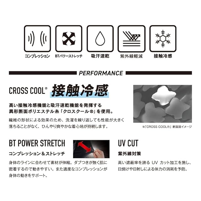 高い接触冷感と吸汗速乾機能を発揮する「CROSS COOL」を使用。