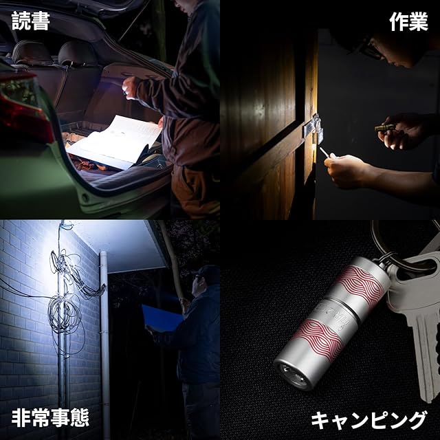[軽量&持ち運びに便利] EDC懐中電灯の長さは51.33mm、 直径は16.2mm、重量は22gで、軽量且つコンパクトに仕上がり、小指よりも小さく、非常時の持ち出しリュックや普段使っているバッグにも気軽に収納できます。また、キーホルダーも付いており、鍵、鍵ケース、 スマホストラップなどに掛けられ、両手を解放してくれ、持ち歩きやすいです