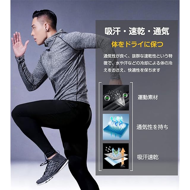 【様々なスポーツ活躍】様々なシーンで使えるスポーツ コンプレッションウエアです。トレニング、フィットネスジム、ランニングなどあらゆるスポーツシーン、オールシーズン対応!サイクリング、登山、レジャーなど場合、軽量でフィット感と抜群の通気性すべて満足!一年間すべての季節に適用します!春、夏、秋、冬の季節はコロケーションして着用できます!屋内と屋外でスポーツするニーズに応えます。