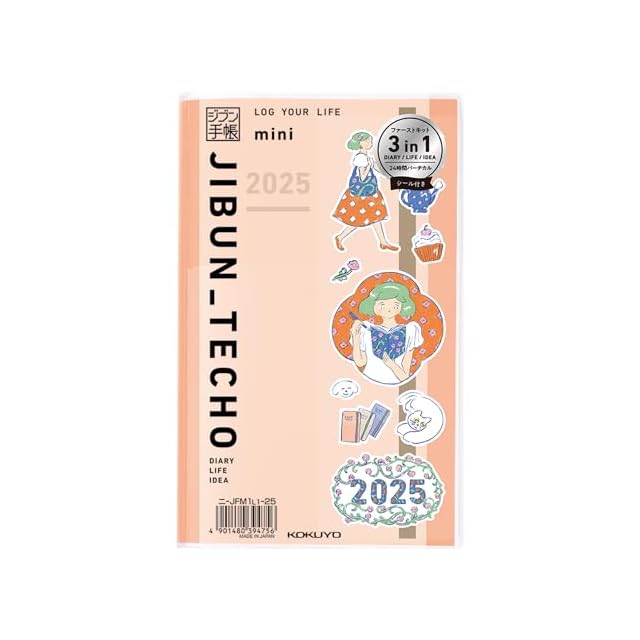 コクヨ ジブン手帳 mini ファーストキット 手帳 2025 マンスリー ウィークリー B6 スリム 限定シール付き サーモンピンク ニ-JFM1L1-25 2024年 11月始まり