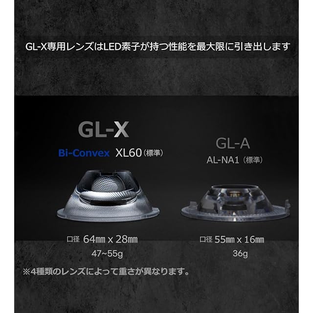GL-Aの上位モデルGL-X(ブラックボディバージョン)は従来品同様、大型肉厚レンズと専用電子回路を備え全体的な製品仕様が向上しています。