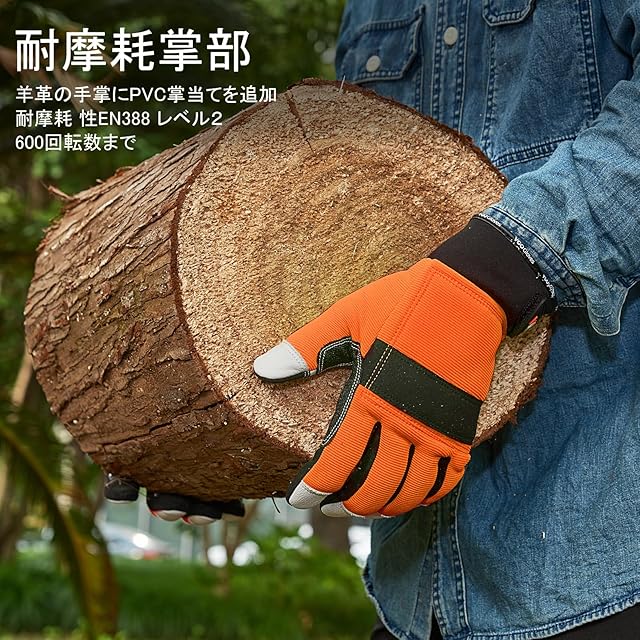 [Vgo...] チェーンソー手袋 防振手袋 メカニックグローブ 作業用手袋 軍手 羊革 掌当て付き 振動軽減 防刃 防護用 滑り止め 両手の甲に12層チェーンソー止め布付き EN381-7規格·レベル1 林業 伐採 草刈りGA9797CS(1双入,LL,オレンジ)