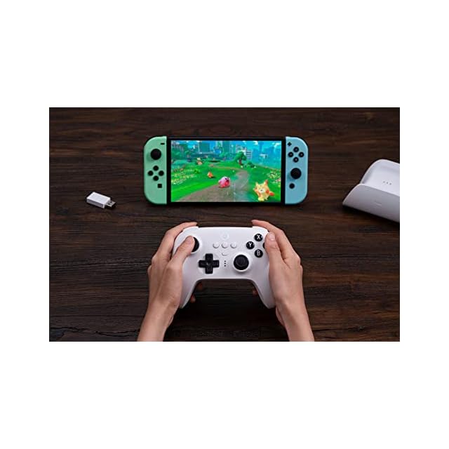 8bitdo ultimate 充電ドックを備えたBluetoothコントローラー、Switch/Switch 2 用のワイヤレスプロコントローラー、Windows、およびsteam Deck (White)