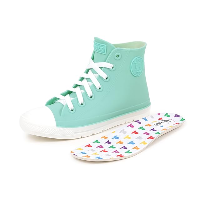 [アキリコ] モズ MOZ レインシューズ スニーカー エコ素材TPE ハイカット レースアップ レディース オリジナルインソール付き アイスクリームミント Mサイズ