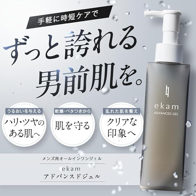 【ekam】エカムアドバンスドジェル 150ml_メンズ オールインワンジェル_今から始める未来の肌ケア_PDRN 保湿 化粧水 美容液 乳液 クリーム アフターシェーブ対応