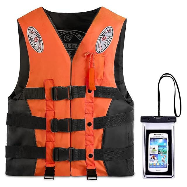 Reedark ライフジャケット 釣り スマホ防水ケース+らいふじゃけっと 呼び子付き 救命胴衣 子供用 大人用 男女兼用 川遊び ボート 海水浴 国交省認定品と同等浮力 4色&6サイズ オレンジ,L(大人用 50~60kg)