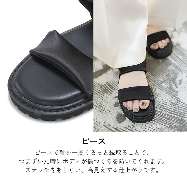【軽量で歩きやすい厚底デザイン】EVA素材のアウトソールで、ボリューム感がありながら軽くて疲れにくい。高低差の少ない設計で、フラットシューズのような安定した履き心地。ふっくら厚みのあるクッション入りインソールで、弾むような快適さを実現。