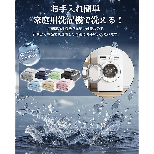【接触冷感Q-max0.45・両面使える】①冷感生地:冷感生地を採用しており、Q-MAX接触冷感値0.45が実現できます。触れた瞬間、体温が速やかに布団に移って、ひんやりして超涼しい!真夏の熱帯夜にかけ寝返りなどの度に倍のひんやり感をお楽しみいただけます。冷房との併用でさらにひんやり!②タオル生地:やわらかなパイルの素材を使用していますので、吸湿・速乾・通気!汗をかきやすい夏でもさらっとして快適にご使用いただけます。おしゃれな無地のリバーシブル仕様なので、お部屋の雰囲気に合わせて表面と裏面を自由的に選択できます。