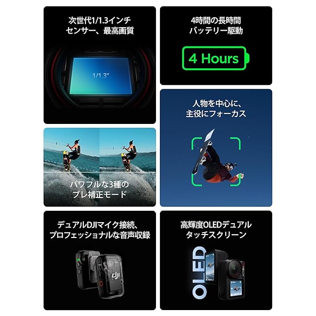 DJI Osmo Action 5 Pro アドベンチャーコンボ アクションカメラ4K 1/1.3インチセンサー付き 12時間の長時間駆動バッテリー(3個) 手ブレ補正 デュアルOLEDタッチ画面 防水 旅行 vlog カメラ ウェアラブルカメラ 動画撮影用カメラ