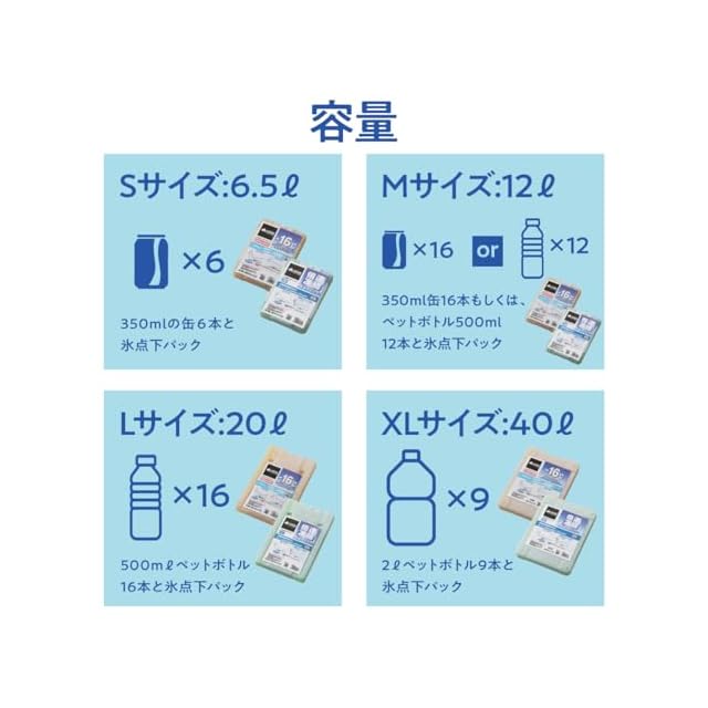 ●350ml缶が16本もしくはペットボトル500mlが12本と、氷点下パックが入る容量です<br>