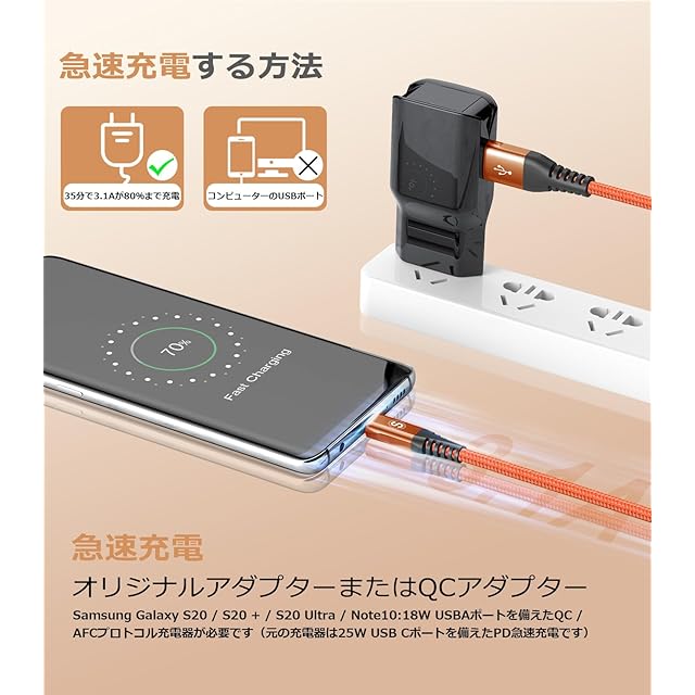USB Type C ケーブル【2M/2本セット】Sweguard USB-C & USB-A 3.1A USB C ケーブル【QC3.0対応急速充電】タイプc 充電ケーブル iPhone16/iPhone 15 Pro MAX, iPad Pro,Samsung Galaxy S25/S24/S23/S22/S21/S20/S10,Pixel,usb type-c機器と互換性があり (オレンジ)