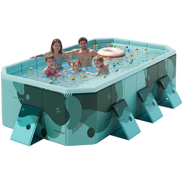 OMATA 【2025新改良 工場直売 非膨張式プール】新デザイン ビニールプール 空気入れ不要 大型 子供用 家庭用 長方形 折り畳み式 収納便利 1秒高速オープン 耐高温 耐摩擦 安全無毒 水遊び 猛暑対策 家庭用 屋内用 アウトドア用 大型 水遊び 簡単な排水 安心安全な 日本語説明書付き(内径253*133*51CM,外径295*165*51CM)