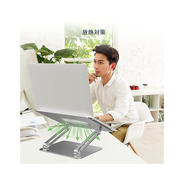 【放熱対策・滑り止め】●肉厚でしっかりとした造りながら、中央に大きな穴が開いているのでノートPCなどの放熱が気になるものを載せても平気です。●シリコンゴム製の滑り止めパッドが上下両面(接地側およびパソコン側)の接地面に付いているので、滑りにくく安定して使えます。また、構造上、macbook スタンドの下に空間ができるので、書類を広げたり、使わない時はキーボードをしまっておけたりできるのが助かっています。