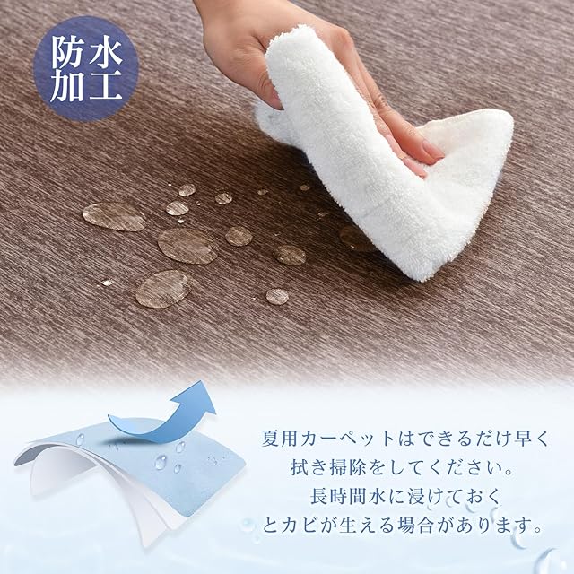 【防水加工】この夏用カーペット3畳の表面は防水加工が施されており、液体の浸透を効果的にブロックします 水垢は表面に短時間残り、軽く拭くだけできれいになり、ラグマット夏用を長く清潔に保ちます(夏用ラグはできるだけ早く拭く必要があり、長時間水に浸すとカビが生える場合があります)