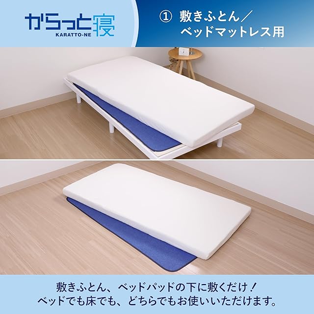 【寝具用除湿シート】今お使いの敷布団・マットレスに敷くだけ。ベッドでも床でも、敷き布団でもベッドマットレスでも、どちらでもご使用OK。ベッドマットレスの場合は、マットレスの上に除湿シートを敷き、その上にベッドパッドを重ねてご使用ください。敷き布団の場合は床に直接シートを敷いてその上に敷き布団を重ねてお使いください。