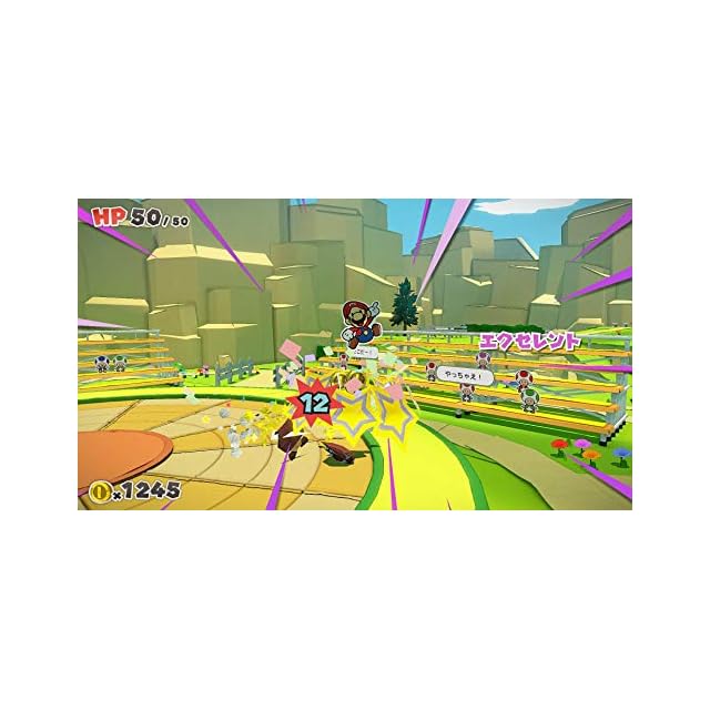 紙でできた広いマップには、仕掛けと、個性豊かなキャラクターたちとの出会いがたくさん。キャラクターたちと交流しつつ、折られてしまったキノピオを探したり、新しい遊びである「カミの手」で謎を解いたりして進みます。マリオに襲いかかるオリガミ兵とは、「パズル×アクション」の新たなバトルで戦います。360°をぐるりと取り囲む敵たちを、回して、そろえて、一気に倒してしまいましょう!