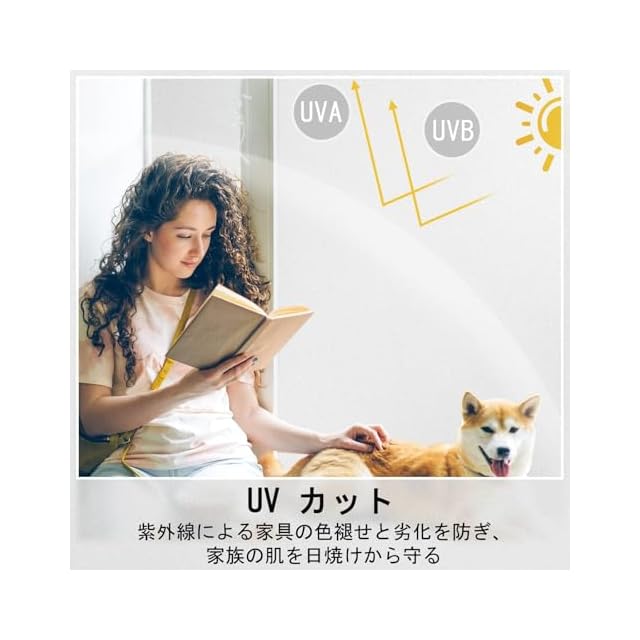 遮光・目隠し・UVカット:昼夜を問わず、外からはほとんどみえない!朝、光漏れが減って優しくなります。夜、カーテンを開いても外から光が通さずぐっすりと眠れます。UVA 84%・UVB99% 以上カットし、色褪せ対策として内装をきちんと守ります。