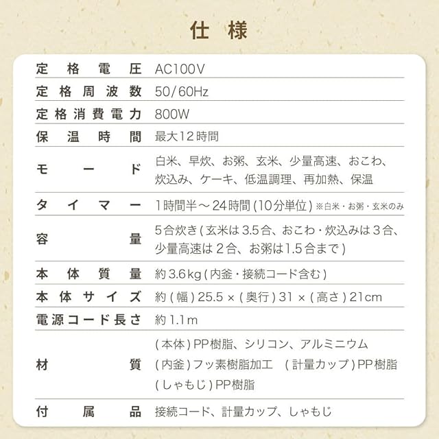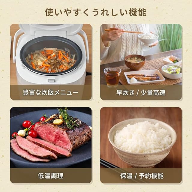 ★ 使いやすくうれしい機能 ・多彩な炊き分け ・早炊きモード ・保温予約機能 ・チャイルドロック