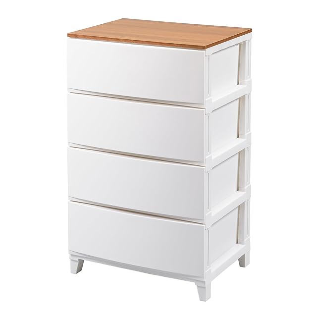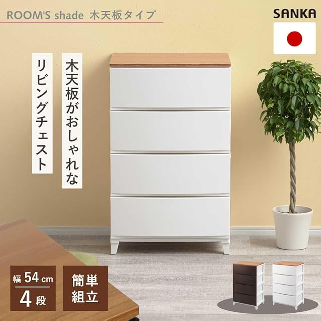 サンカ ルームス 木天板 収納 チェスト ホワイト 白 ワイド 4段 (幅54×奥行42×高さ88cm) スルっと引き出せて スキッと締まる引き出し キズ付きにくいマット加工パネル 簡単組み立て 日本製 衣装ケース タンス ROOM'S shade squ+ RSDM-S544WH