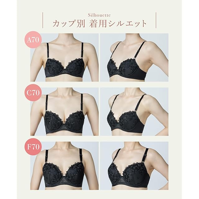 ワイヤーあり、ホック後ろ留め、(AA・A・B・C, D・E・F65-75, G70-75, D90-95)ホック2段3調節、(D・E・F・G80-85)ホック3段3調節、(AA・A・E・F・G, B・C・D65-85)パッド受けあり/パッドあり、(B・C・D90-95)パッド受けあり/パッドなし、(D・E・F・G, B・C90-95)ボーンあり
