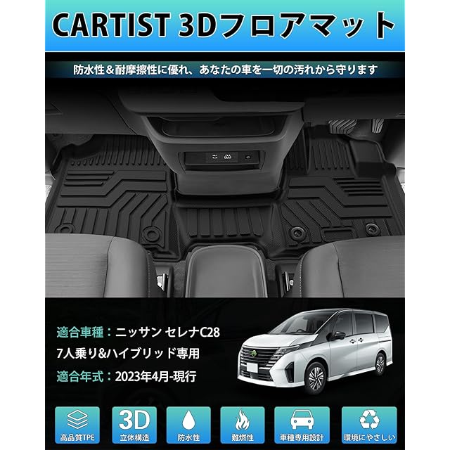 Cartist ニッサン 新型 セレナ C28 フロアマット セカンドマット 7人乗り ハイブリッド専用 立体タイプ 3Dフロアマット 立体構造 立体カーマット 車用 SERENA C28 e-power 2023年4月~現行 防水 滑り防止 耐汚れ TPE素材 カスタムパーツ 車種専用設計 取付簡単 保護パーツ アクセサリー カー用品 1&2列目 4Pセット