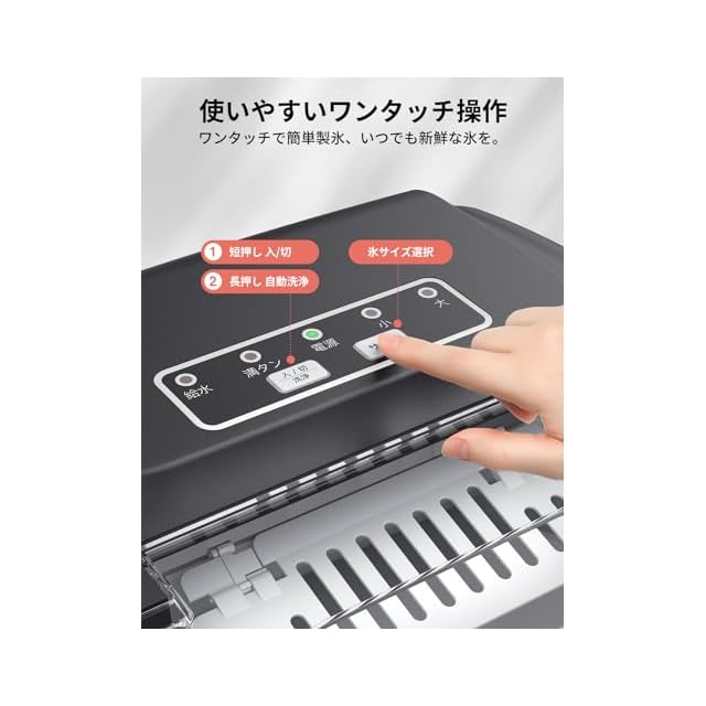 【2サイズの氷選択可能】製氷機はニーズに合わせて小さな氷または大きな氷を選択できます。小さな氷はドリンクを素早く冷やし、大きな氷は冷たさを長持ちさせます。アイスコーヒー、スムージー、カクテルなど、どんな種類の飲み物にも最適な氷を提供できます。