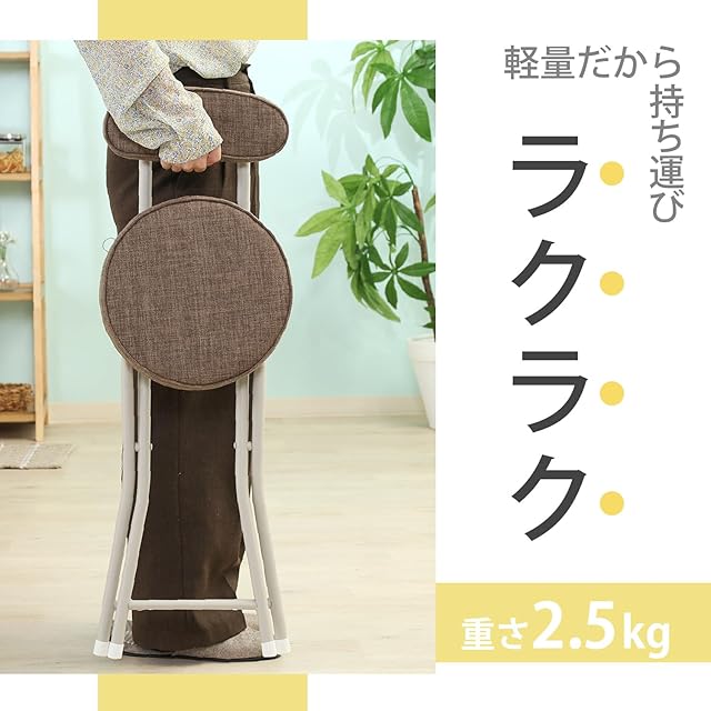 不二貿易 折りたたみチェア 椅子 パイプチェア 座面高50cm ハイチェア 背もたれ付き 幅30×奥行45.5×高さ76cm ファブリック PUブラウン 73619