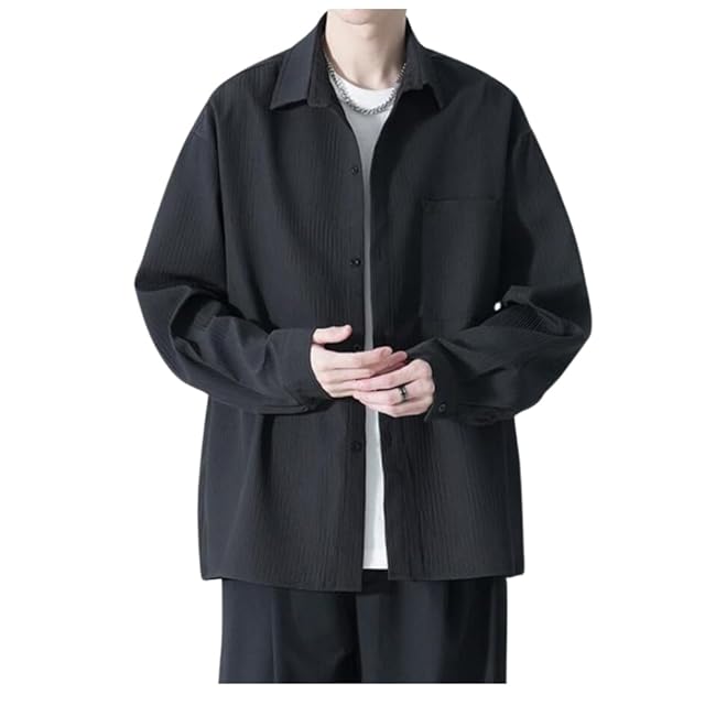[foveitaa] メンズ シャツ 長袖 春秋服 メンズ ワイシャツ 大きい サイズ ビジネス カジュアル yシャツ ゆったり おしゃれ 服 軽い 柔らかい かっこいい トップス 無地 シンプル オシャレ black-M