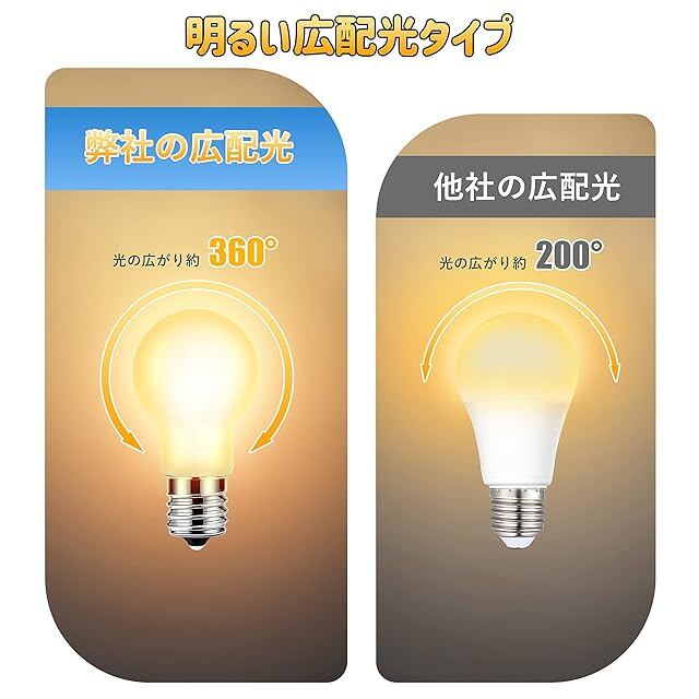 広配光タイプ・高い演色性:約360°の明るさ広がる広配光設計、演色指数(CRI):>Ra83、物の本当の色を復元し、あらゆるものを美しく自然に見せる。玄関、廊下、トイレ、リビング、寝室、台所、脱衣所に適用されます。