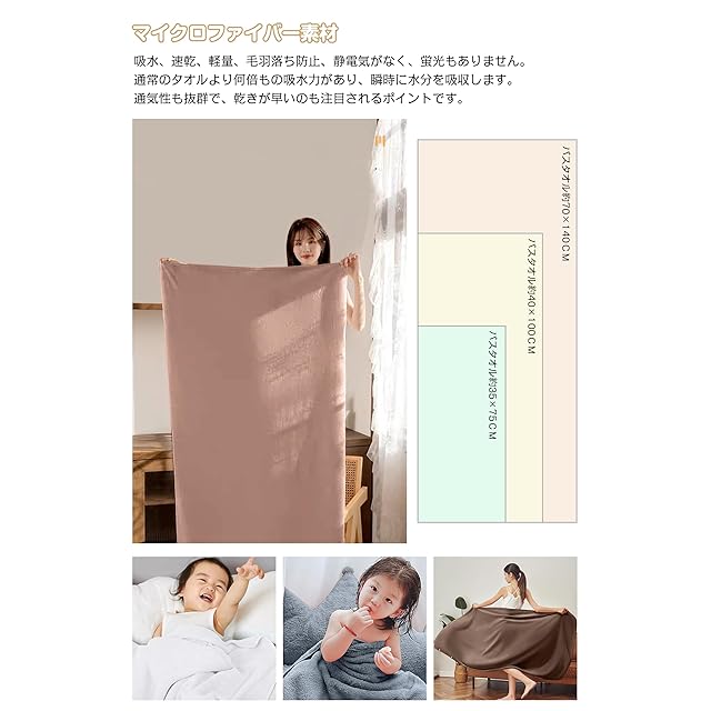 【素材】高品質マイクロファイバー素材で作られています - このタオルは髪の毛の1/100のサイズのマイクロファイバー(極細繊維)だけで作られており、毛細管現象で素早く水分を吸収し、水分を拡散させます。 蛍光染料一切使用しておりません、優しく柔らかい肌触り、非常に快適です。 品質: このバスタオルは色褪せたり脱落したりしないことをします。
