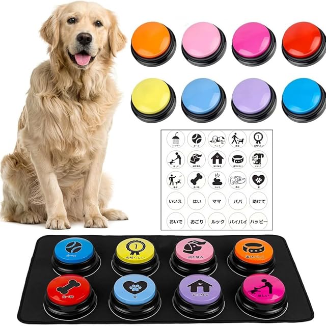 ペット ボタン 会話 犬 会話ボタン 犬ボタン トーキングペット 録音ボタン 8色セット 犬おしゃべりボタン 犬用の記録可能なボタン 犬知育玩具 大型犬 おもちゃ 犬しつけ 天然ゴムマット付き 日本語説明書付き (8色)