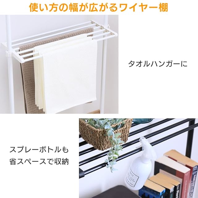 【洗面所でのタオルハンガーにも】アイリスプラザ ラック 棚 壁面 耐荷重各5kg 天井170~260cm対応 幅80 ホワイト TWR-800