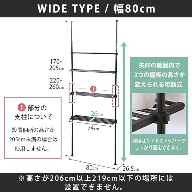 商品サイズ(cm):幅約80×奥行約26.5×高さ約170~260
