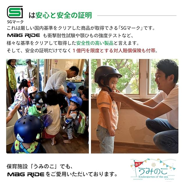 【1歳からのヘルメットデビューにジャストサイズ】46cmの小さなサイズ設計だけでなく、日本人の頭の形に合わせて設計された専用設計は初めての自転車用ヘルメットにぴったりです。お母さんと一緒に乗る際も、ヘルメットを被って安心に通園、通学が出来ます。