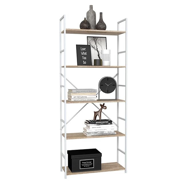 ★【スリム収納&おしゃれ】5段式本棚、シンプル&スリムな構造、ファッション、実用的です。本棚、収納ラック、植物のスタンドに十分なスペースを提供します。オフィスの棚、居間、キッチン、リビング、書斎、寝室などに適しています。