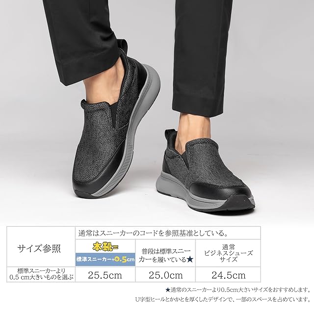 【サイズ】通常のスニーカーより0.5cm大さいサイズをおすすめします。U字型ヒールとかかとを厚くしたデザインで、一部のスペースを占めています。