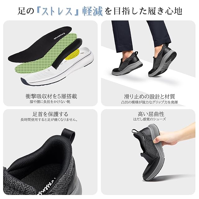 【立ったまま履ける靴】手を使わず、腰をかがめることなく、楽に靴を履くことができます。忙しい時も簡単すぽっ!通勤、散歩、ショッピング、旅行、キャンプ、入院などのシーンで利用できます。