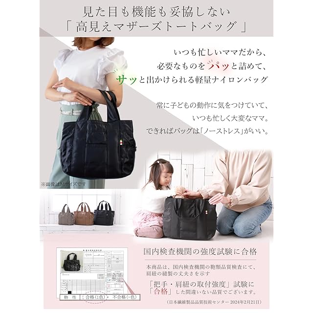 [アンコール] 現役ママのこだわり 上質ナイロン 『高見えママバッグ 軽くて大容量』 トートバッグ マザーズバッグ 2WAY ショルダーベルト付 撥水 カジュアル 旅行 出産祝 ジャパン