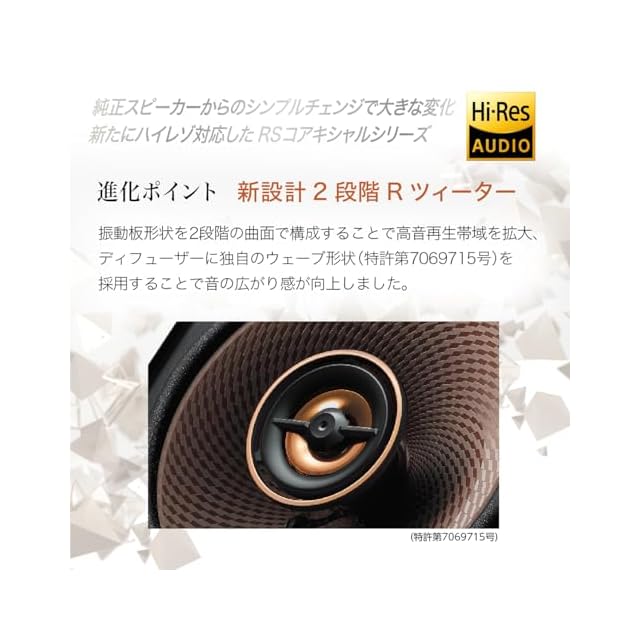 新設計の「2段階R(曲線)ツィーター振動板」を採用、ハイレゾ帯域周辺のパフォーマンスを向上